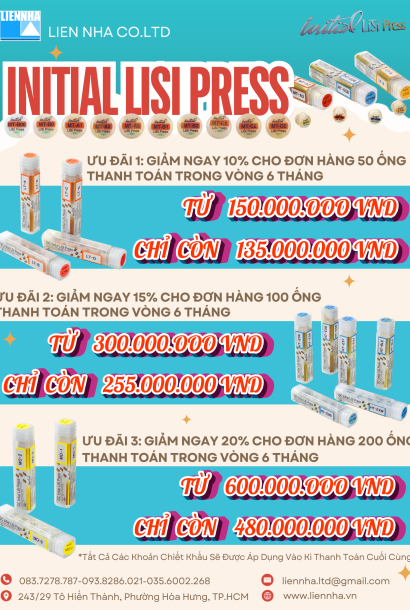 ƯU ĐÃI ĐẶC BIỆT CÁC SẢN PHẨM SỨ ÉP GC Initial LiSi Press – GIẢM MẠNH ĐẾN 20% CHO LABO NHA KHOA